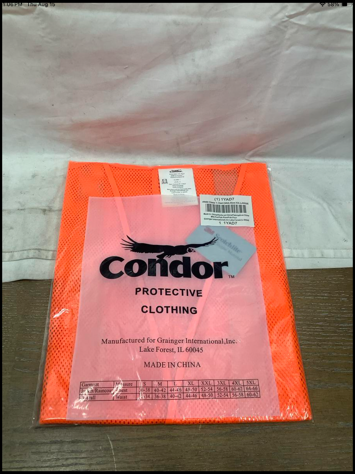 Condor Protective Clothing Orange Safety Vest- XXL